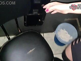 Latina Masseuse in Lingerie Gives Handjob at Gloryhole for Swallow Finish