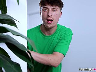 stepmom spots stepson stroking to her porn on mother's day then anal fucks him