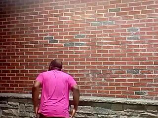 Enjoy a private strip tease for free, facing backwards in 70 degree weather.