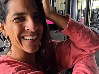 Hot brunette banged at condo gym session
