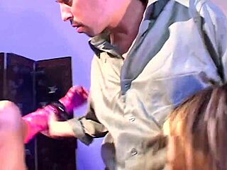 Hey, watch two blondes dive into a wild foursome with latex-clad BDSM guys!