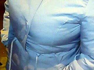 mature curvy exhibitionist flashes huge ass in see-through leggings on public street taboo tease