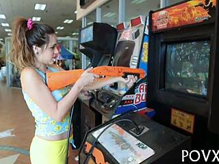 barely legal slut competes in sloppy blowjob then rough pussy fuck pov