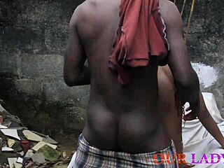Big ass ebony amateur gets hardcore interracial pounding in the backyard with instructor.