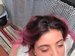 I interrupt the horny mature cleaning lady washing dishes to suck my monster cock deepthroat