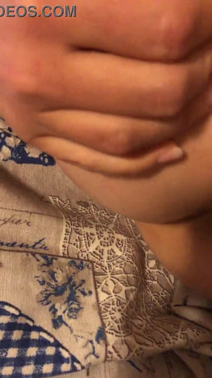 sexy cuffed girl with big natural tits rubs her pussy and ass using a huge toy 😍