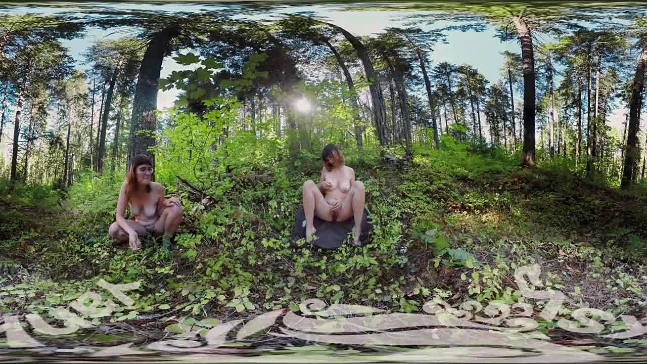 the curly brunette lesbian with her perfect ass and fake tits gets pleasured outdoors by her girlfriend through intense licking and tribbing