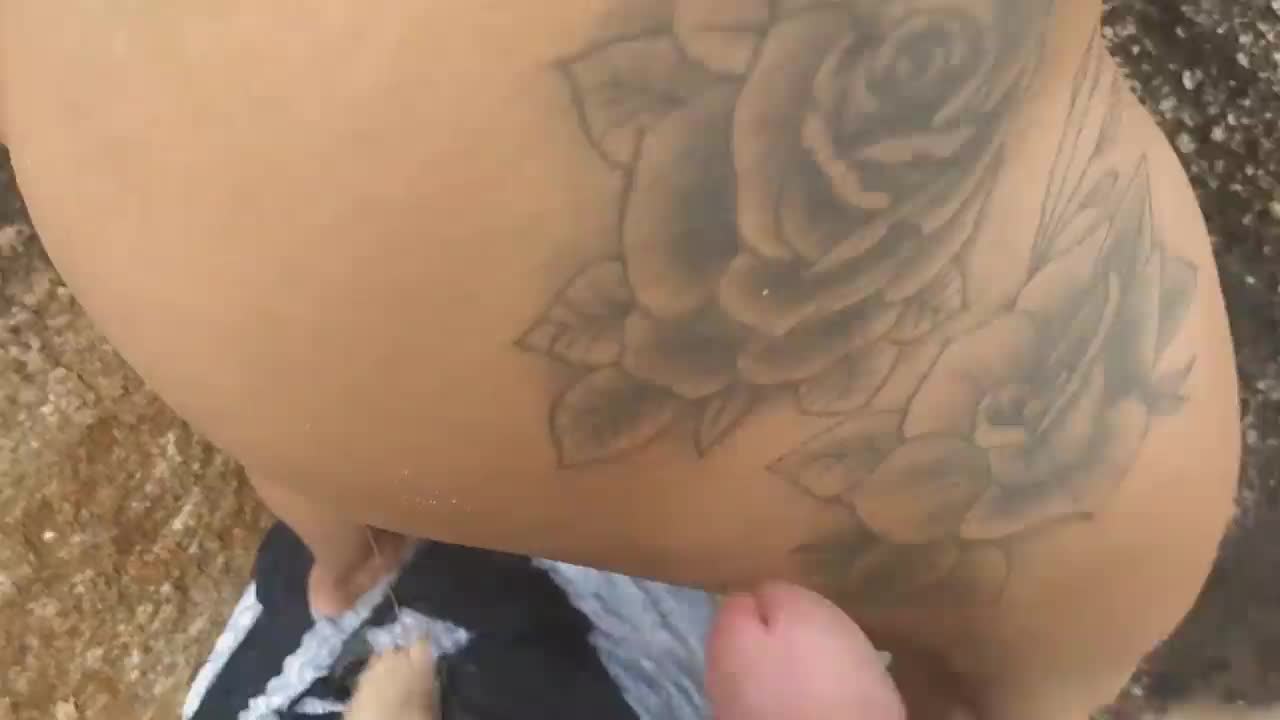 Uma linda novinha é observada fazendo sexo em público nas pedras da praia e é atrapalhado por um terceiro indivíduo