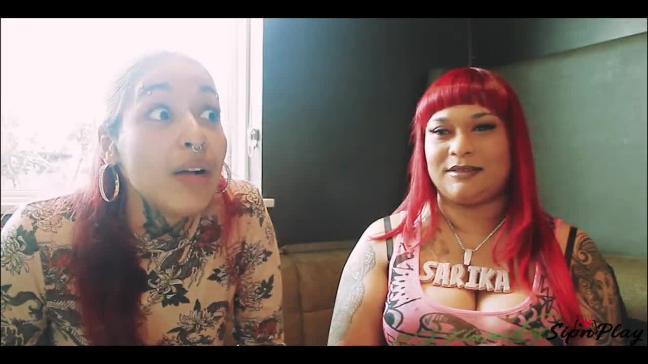 Feel the thrill as the tattooed redhead ladyboy strips in miniskirt and plays with her shecock passionately.