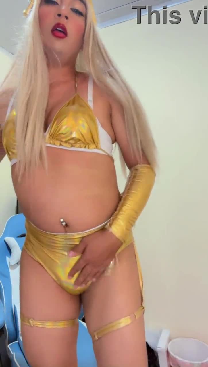 बड़े स्तनों वाली ट्रांस लैटिना अपनी बड़ी लूट को टॉय से खेलती है और जोर से हिलाती है
