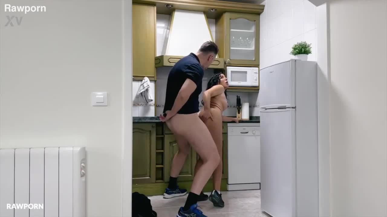 delantal on but nothing underneath as my boyfriend takes me rough in the kitchen with deepthroat and riding 🍑