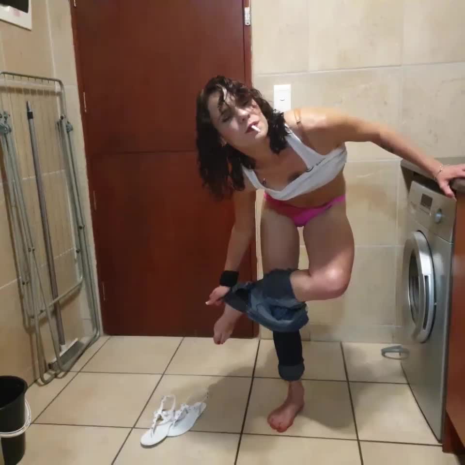 Wow, look at this hot girl losing the jerk off game and stripping to show her huge tits in sheer red!